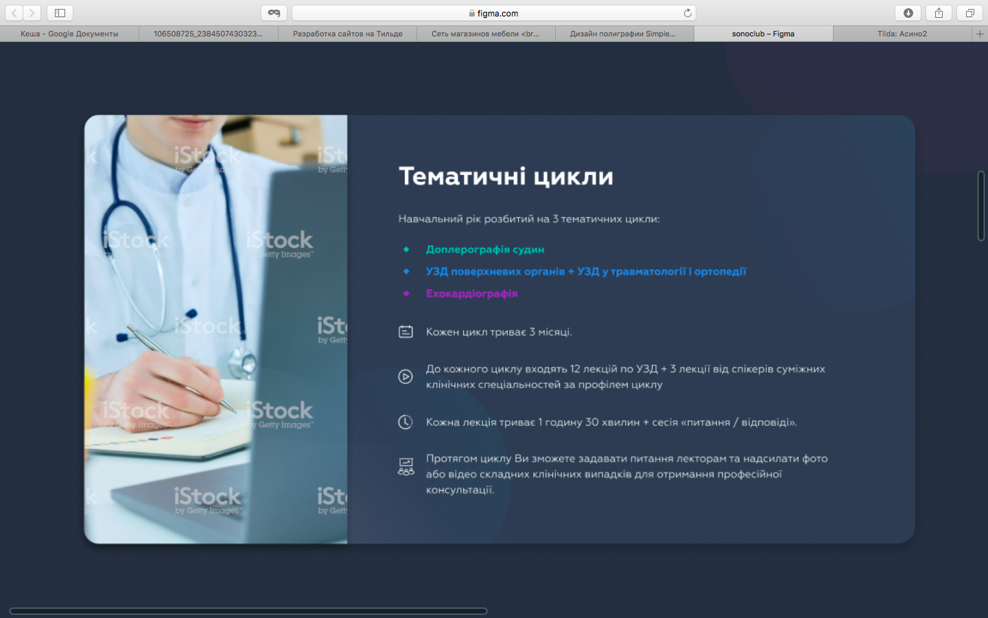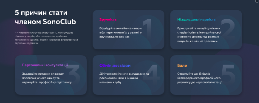 SonoClub – це тематичні курси від топових спікерів УЗД та суміжних спеціалістів у форматі клубу, де Ви зможете отримувати індивідуальні консультації лекторів для вирішення Ваших професійних питань.